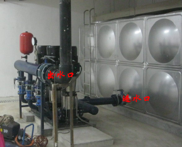1, the equipment into the water: stainless steel water tank or self built pool of water outlet flange butt frequency conversion constant pressure water supply equipment inlet flange.